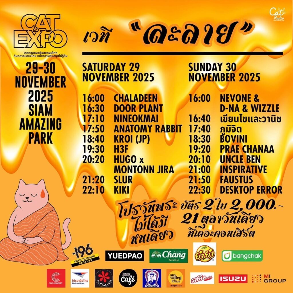 “CAT EXPO 12” เทศกาลดนตรีของคนเล็กๆ กับตลาดเพลงไทยแห่งความสุข สนุกไม่รู้ลืม เรามาลุ้นไปด้วยกันว่าปีนี้จะต้น “ฝน” ได้อีกปีหรือไม่ วันที่ 29-30 พฤศจิกายน 2568